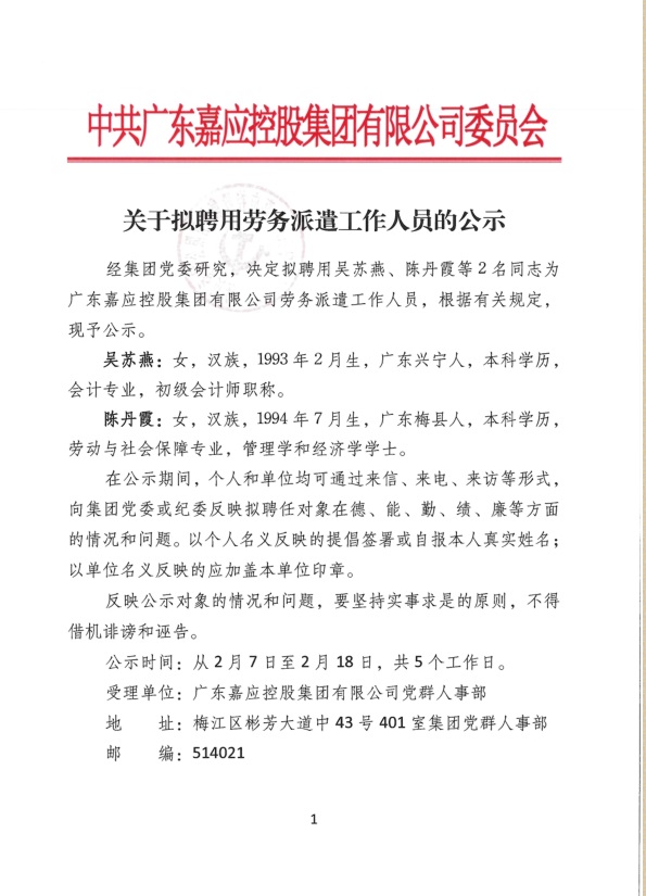 有關招聘勞務人員進行公示:
